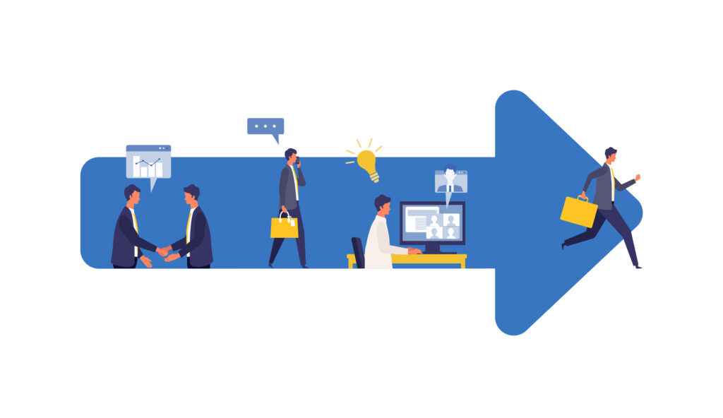 2025.5.27 Metaphor of business process, accomplish, strategy. Flat design vector illustration of business people.